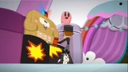 He had a much larger role in The Kawaiifier. Unlike Nofun who wanted to spoil Kawaiification Day, Boring wanted to have fun. He proceeded to enjoy several activities including the ball pit and whack-a-mole. He was arrested at the end of the episode.